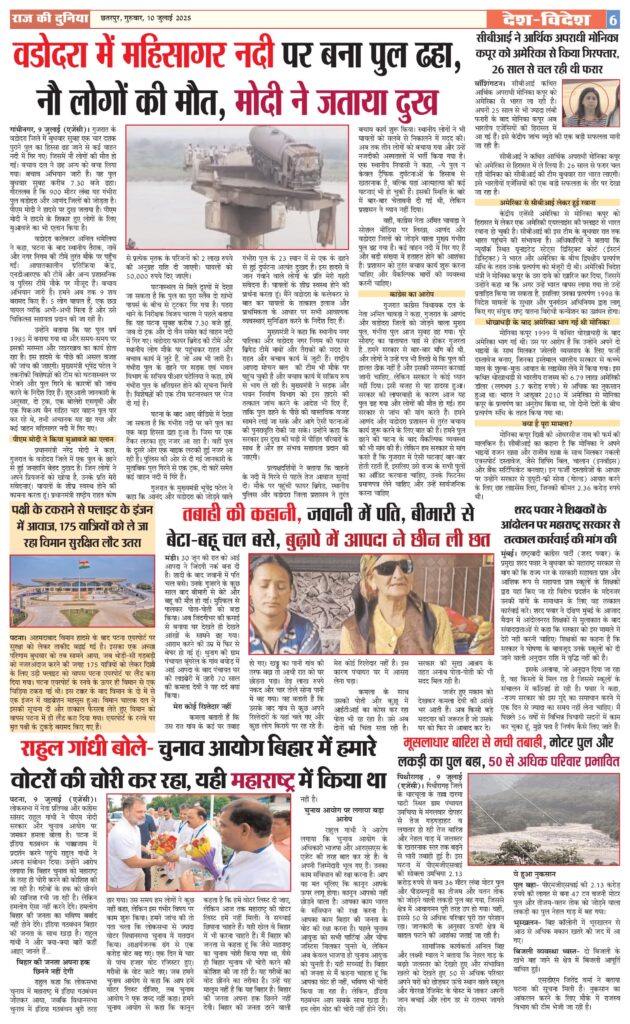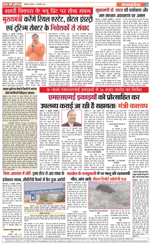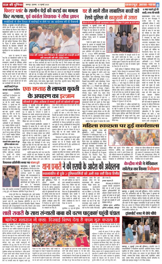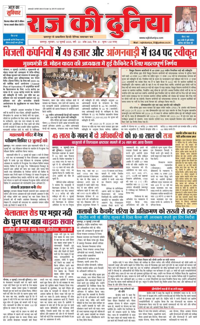 Home डेली न्यूज़ RAJ KI DUNIYA CHHATARPUR MADHYA PRADESH डेली न्यूज़ RAJ KI DUNIYA CHHATARPUR MADHYA PRADESH By Admin - July 10, 2025 94 0 FacebookTwitterWhatsAppTelegram I FacebookTwitterWhatsAppTelegram Previous articleपूर्व सरपंच गोलू महाराज पर जमीन हड़पने का इल्जामNext articleRAJ KI DUNIYA CHHATARPUR MADHYA PRADESH – 11/07/2025 Admin RELATED ARTICLESMORE FROM AUTHOR डेली न्यूज़ गाय माता को राष्ट्रीय पशु बनाने के लिए आरुष गुप्ता ने की छतरपुर वासियो से विनम्र अपील । डेली न्यूज़ राज की दुनिया 1April2026 डेली न्यूज़ राज की दुनिया 24/03/2026 LEAVE A REPLY Cancel reply Please enter your comment! Please enter your name here You have entered an incorrect email address! Please enter your email address here Save my name, email, and website in this browser for the next time I comment. 4FansLike78FollowersFollow204SubscribersSubscribe- Advertisement -EDITOR PICKS कैबिनेट ने भारतीय रेलवे में चार मल्टीट्रैकिंग परियोजनाओं को मंजूरी दी Admin - April 4, 2025 CM साय ने महतारी वंदन योजना की जारी की 10वीं किश्त, रायगढ़ में ”नालंदा... Admin - December 3, 2024 छत्तीसगढ़ : दंतेवाड़ा सुरक्षाबलों का फिर बड़ा ऑपरेशन, एनकाउंटर में 16 नक्सली ढेर, कोर... Admin - March 29, 2025 छत्तीसगढ़-जगदलपुर में पापा को बचाने भालू से भिड़ा पांचवीं का छात्र, उठने न दिया... Admin - January 28, 2025