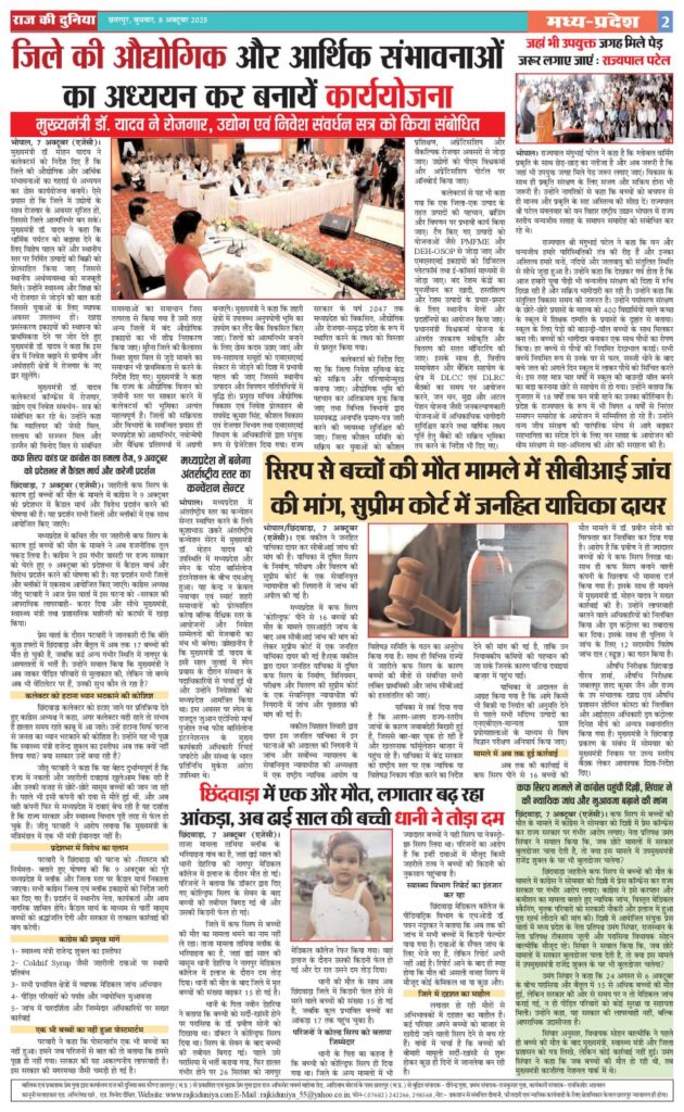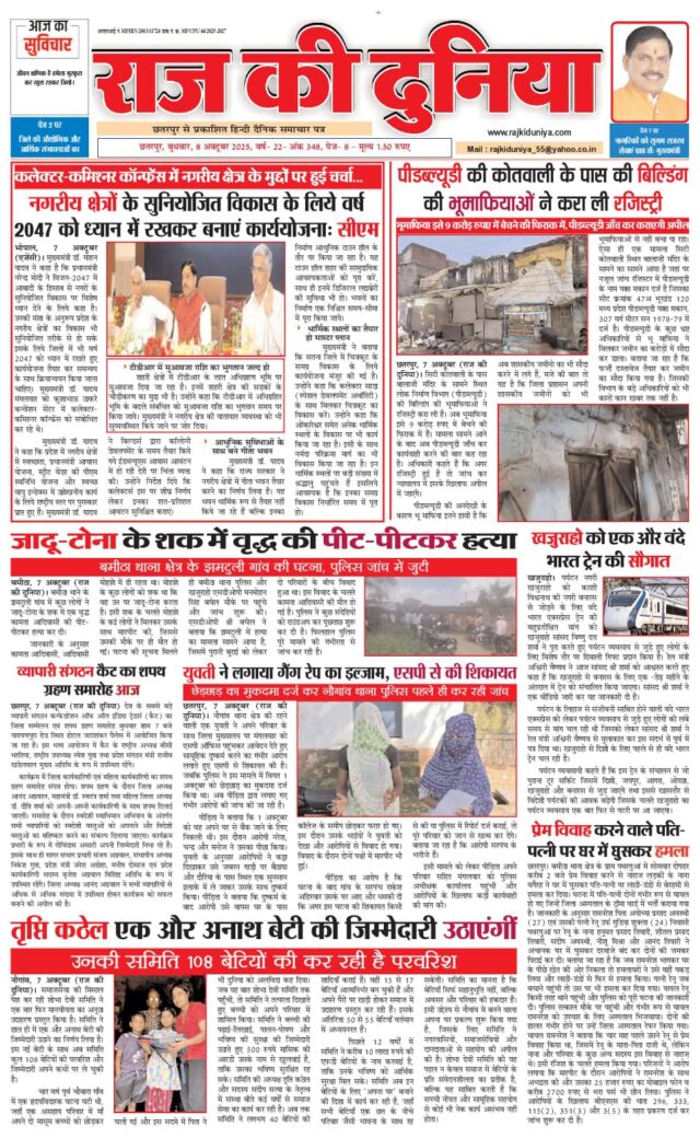 Home डेली न्यूज़ राज की दुनिया छतरपुर 8 अक्टूबर 2025 डेली न्यूज़ राज की दुनिया छतरपुर 8 अक्टूबर 2025 By admin - October 8, 2025 9 0 FacebookTwitterWhatsAppTelegram